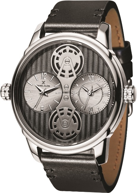 Можно почувствовать себя доктором Стренджем или Железным Человеком, только лишь примеряв футуристическую модель Daniel Klein DK11305-5. Два независимых часовых циферблата, размещенные на одном экране, словно позволяют быть в двух местах одновременно. Декоративные шестеренки в нижней и верхней части дисплея усиливают хай-тек стиль данного изделия. Чёрный кожаный ремешок завершает общую концепцию и удобно ложится на запястье.